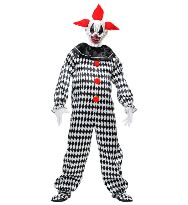 Costum Clown Diabolic include salopeta cu guler aplicat. O deghizare inspaimantatoare de Halloween! Let’s start the party!