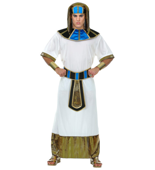 Costum Faraon Egipt include tunica, centura, gulerul si palaria. Marimile disponibile sunt M/L si XL.