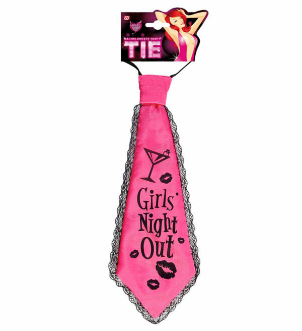 Cravata Burlacite din satin, pentru petreceri de neuitat alaturi de prietenele tale! Cravata este rz si are mesajul ?Girls Night Out? inscriptionat pe ea.?