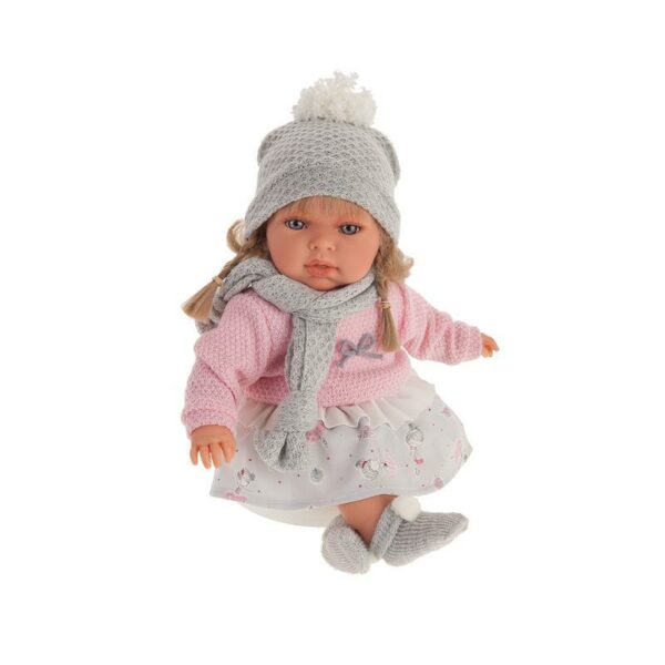 Papusa blonda Any cu fular si caciulita gri, cu sunet, 37 cm, Antonio Juan