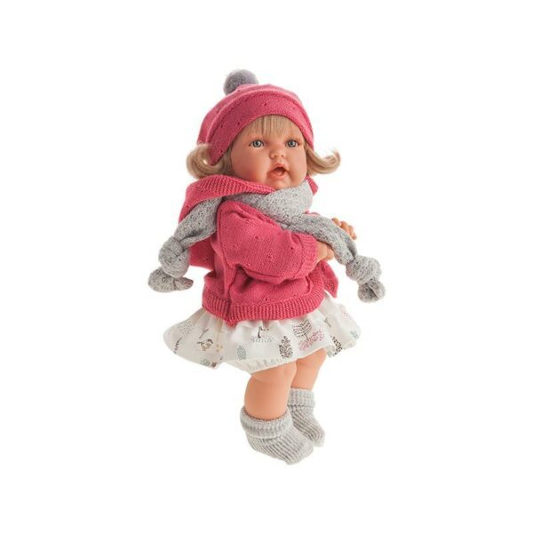 Papusa blonda Petit, cu esarfa gri, Antonio Juan are corpul realizat din material moale, iar capul, bratele si picioarele sunt din vinil moale, placut la atingere. Papusica masoara 27 cm si cantareste aproximativ 600 grame. Papusa Petit are ochii albastrii frumosi, parul blond mai lung, ascuns sub o sapca roz sau un pompon gri. Papusa este imbracatra intr-o rochie alba cu detalii mici de culoare gri, un pulover roz colar, o esarfa si sosete gri.In zona burticii are un mecanism inclus pe care atunci cand il strangi rade sau spune mama/tata.Papusile Antonio Juan sunt lucrate manual (gene, pistrui, obraji buze), ceea ce face ca ele sa para atat de naturale incat? par a fi reale. Hainutele sunt realizate din materiale textile de inalta calitate.Jocul de rol cu o papusa simuleaza dezvoltarea gandirii vizuale, a imaginatiei si vorbirii.Papusile Antonio Juan sunt realizate in Alicante, leaganul jucariilor spaniole, unde brand-ul de familie a luat nastere in 1958. Fiecare exemplar este realizat, pictat si finisat manual, folosind materiale de cea mai buna calitate, sustenabile si respectand cele mai stricte standarde calitative europene. Fiecare papusica e insotita de un certificat de autenticitate.Curatare si ingrijire: papusile realizate manual se curata cu grija, cu o laveta umezita in apa si sapun. Dupa spalare si limpezire (tot cu laveta usor umezita), se lasa la uscat la aer, intr-un loc umbros si racoros. Niciodata sa nu puneti papusa intr-o masina de spalat sau uscat, nu o lasati mult timp la soare, nu o apropiati de surse de caldura. Pentru papusile cu par, e bine sa fie curatat cu mare grija, folosind doar apa sau putin sapun, apoi uscat la aer. Se poate pieptana cu grija, folosind un piaptan (nu perie), evitand incalcirea firelor de par.Varsta recomandata +3 ani.