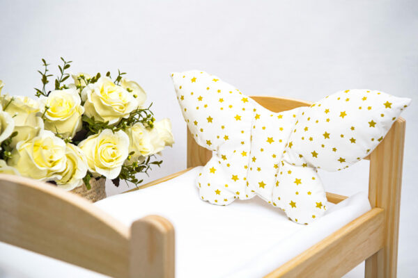 Perna pentru bebelusi Butterfly ajuta la sustinerea capului bebelusului in timp ce se afla in carucior, cos auto, leagan, etc. Are o captuseala subtire in spatele gatului astfel incat capul bebelusului nu este impins inainte, ci doar sprijinit in laterale. Ofera un suport usor pentru capul si gatul celui mic. Puteti folosi aceasta perna chiar si la nou-nascuti pentru a oferi un plus de confort, stabilitate si suport. Perna poate fi folosita la copii cu varsta intre 0 si 3 ani pentru a incuraja dezvoltarea sanatoasa si puternica a musculaturii de la nivelul gatului. Copiii mici au nevoie de sprijin suplimentar pentru gatul lor atunci cand se dezvolti, iar perna Butterfly de la Babyen ii ajuta pe cei mici sa stea confortabil si sa aiba o pozitie corecta chiar si in timpul plimbarilor. 100% bumbac, hipoalergenic, Umplutura siliconizata hipoalergica din poliester 100% tip bilu?e marca SuperBall-?Caracter pronun?at hypoalergenic ? certificare absen?a substan?elor periculoase OEKO-TEX? 100 (clasa I) Grad de elasticitate foarte bun Durata foarte mare de utilizare Asigura o deosebita permeabilitate a aerului Asigura efectul de micro masaj prin mi?care Se spala in ma?inile de spalat Lavabila la temperatura de 40 ?C Fabricat in Romania Un produs BABYEN